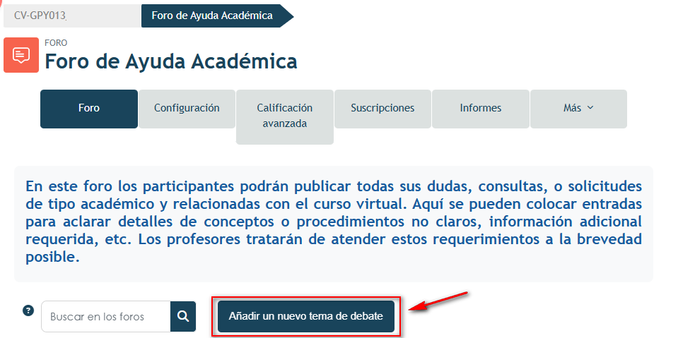 2. Para colocar un nuevo tema de discusión haga clic en “Añadir un nuevo tema de debate".