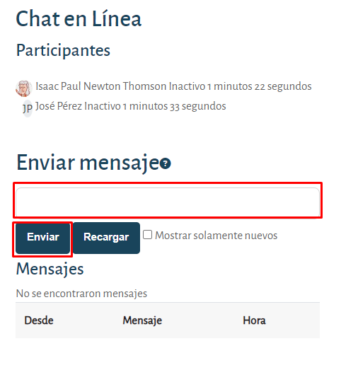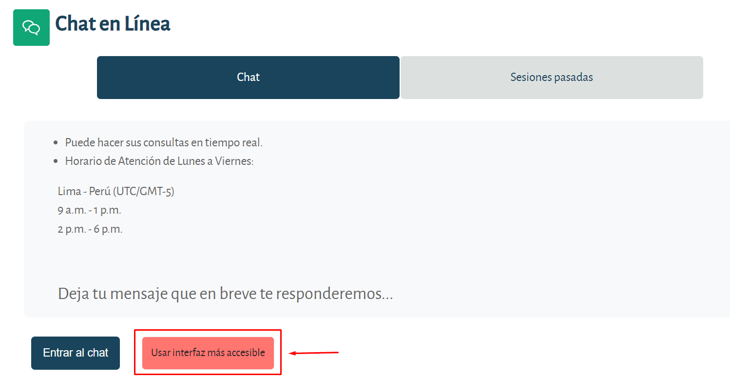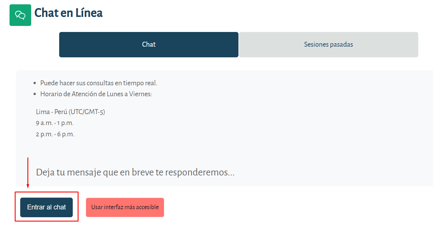 La plataforma ofrece la herramienta de Chat en Línea, y para hacer uso de ella se debe seguir el siguiente procedimiento: