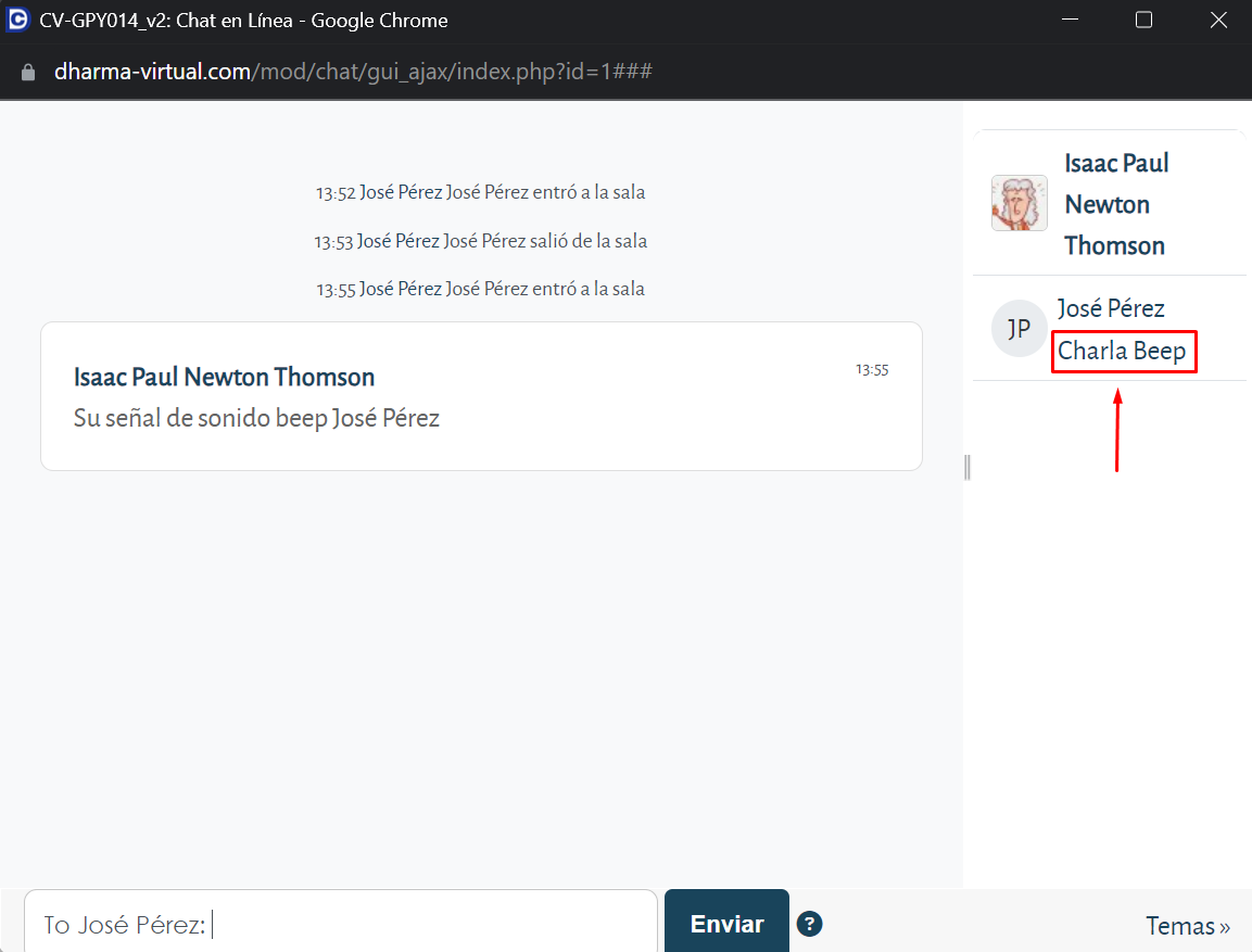 Para que le llegue una notificación de sonido a la persona que desea, haga clic en “Charla Beep”.