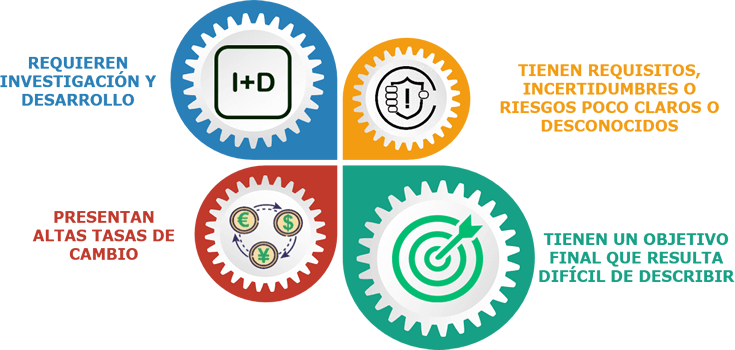 | ✓ | d) Proyectos que presentan requisitos, incertidumbres o riesgos poco claros o desconocidos. |